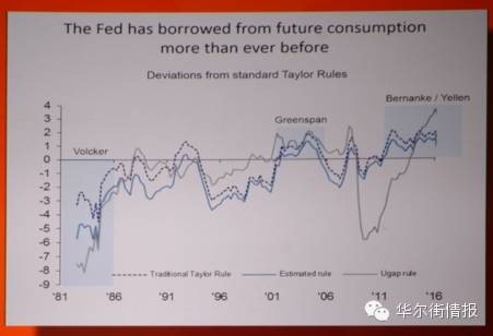 根據(jù)大多數(shù)的客觀評(píng)價(jià),我們的貨幣政策過度寬松,且持續(xù)時(shí)間為有史以來最長。除了最后的量化寬松政策,美聯(lián)儲(chǔ)直至今日仍實(shí)行極為平和的策略。換句話說,諷刺的是,本屆美聯(lián)儲(chǔ)最不依賴數(shù)據(jù)。